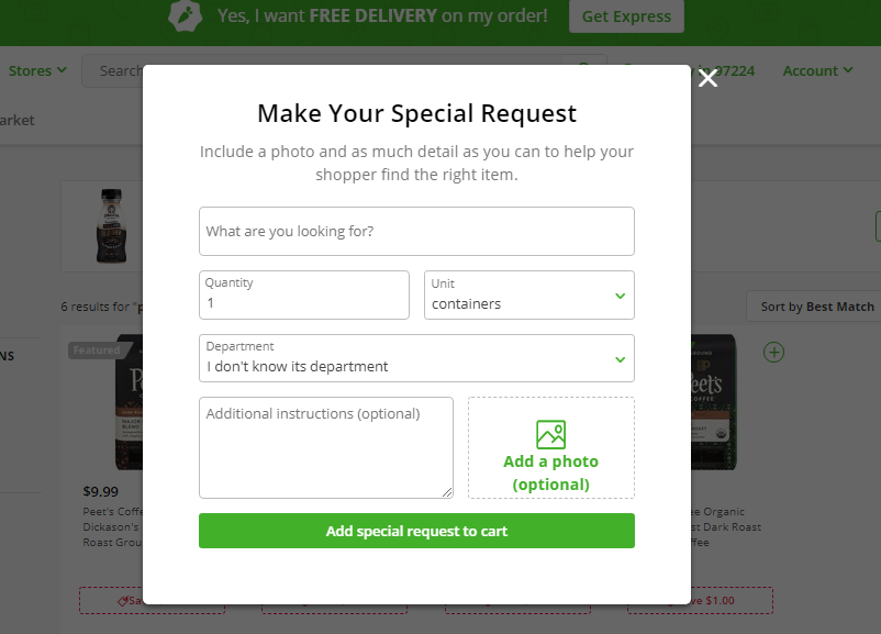 Sometimes I will know a store so well, I'll know they have an item I'm want. That item isn't always listed on the Instacart site for whatever reason but the thing I appreciate the most is that Instacart allows you to make a special request and describe the item you are looking for, where the shopper can find it, and how much of it you want. They even let you provide an image of what you are looking for.